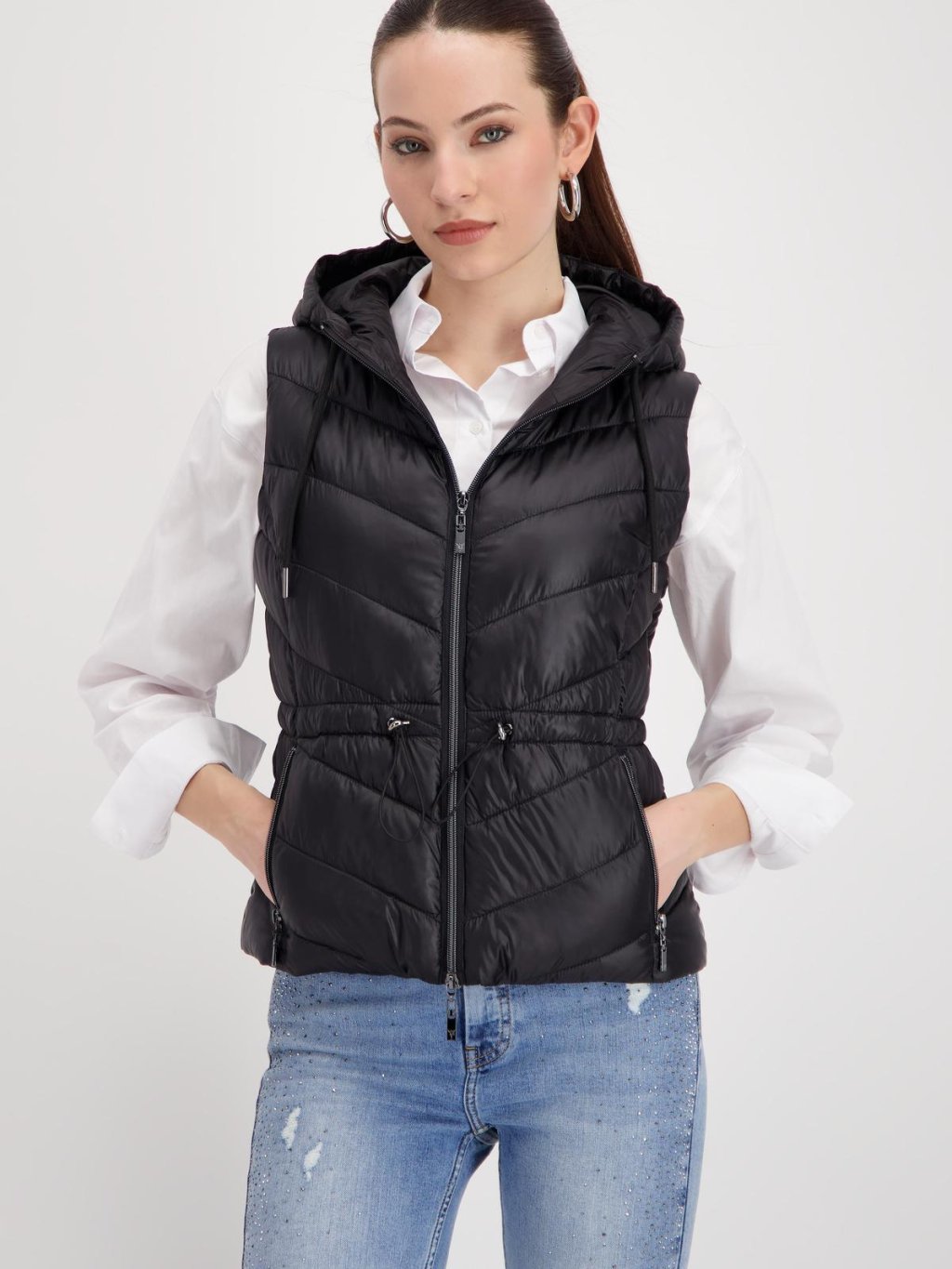 PROŠÍVANA VESTA TOKYO S KAPUCÍ ČERNÁ