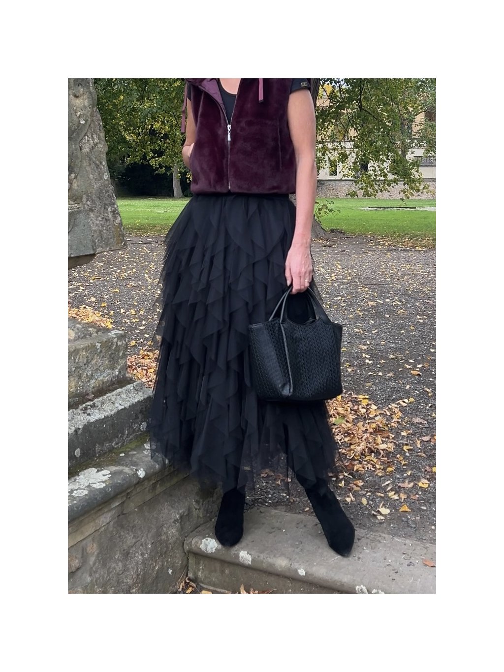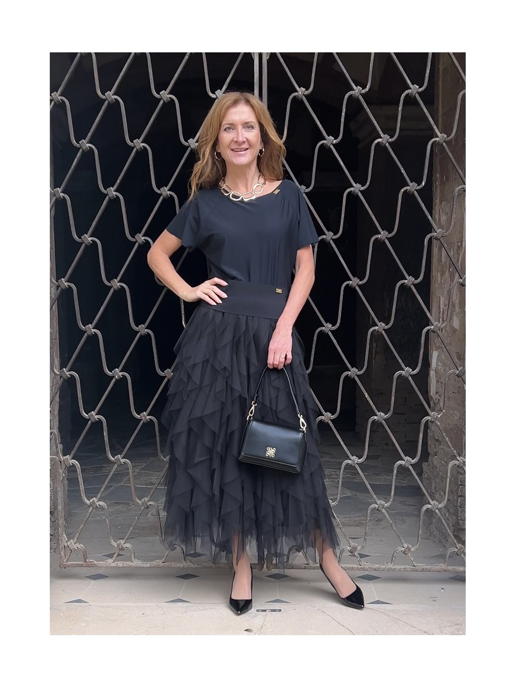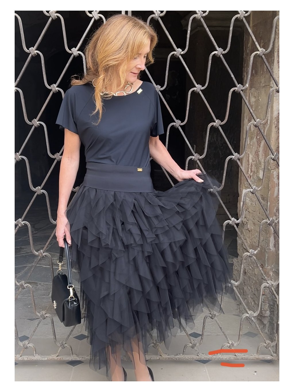 - tylová černá sukně s volány - elegance i ležérní šarm v jednom
