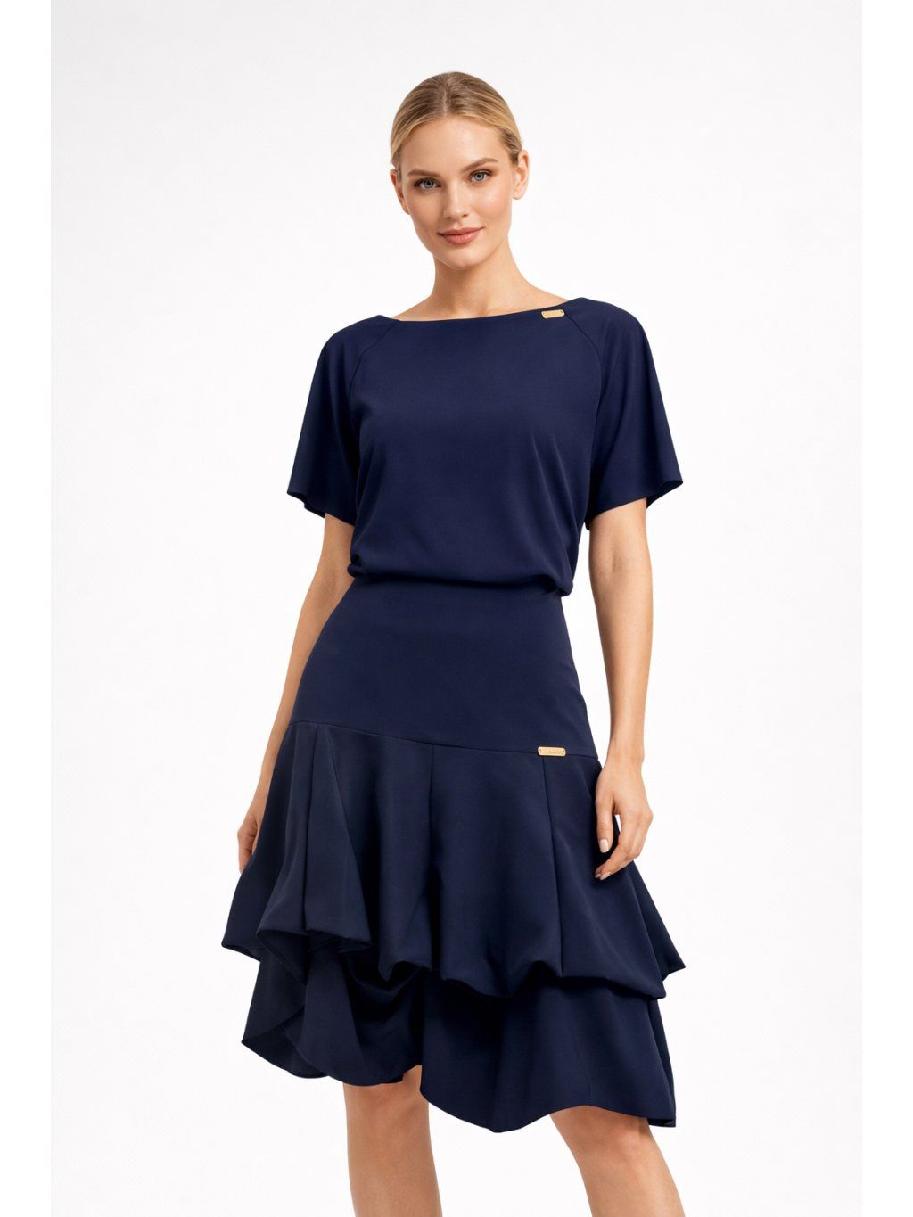 - půlkolová sukně v pase s hladkým elastickým dílem se stahujícím efektem