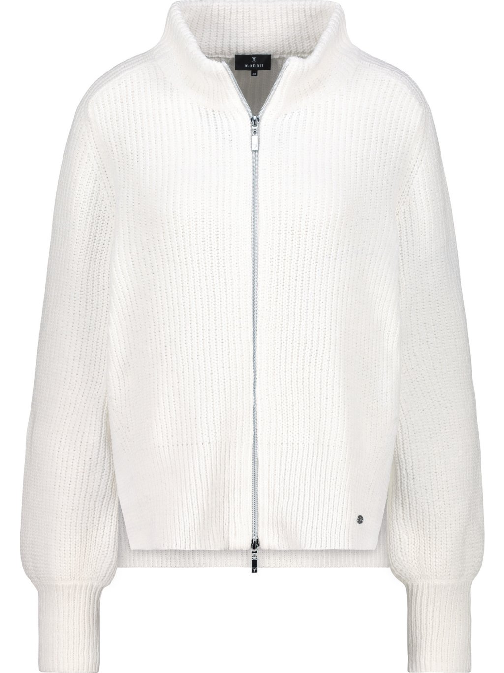 - velmi elegantní bílý svetr s dvojsměrným zipem a s rozporky na bocích
