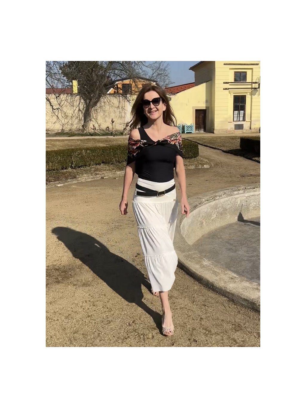 - tílko s kulatým výstřihem se širokými ramínky se ideálně hodí ke kalhotám Josefíne nebo sukni Terezie